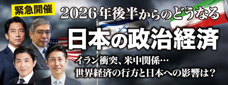 相場環境に左右されない投資法で的中率80%を超える、株式アナリスト有賀泰夫のスタジオ収録講話「2026年春からの株式市場の行方と有望企業」と、人気の不動産アナリスト幸田昌則の「2026年度版 最新不動産市況と経営対策」セミナーを緊急収録。今年、春からの経済・株式・不動産の先見にご活用いただけます。