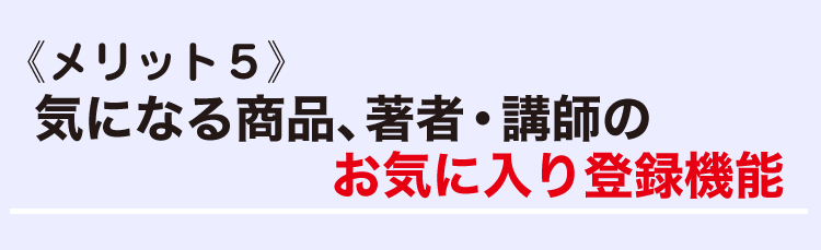 弊社本、CD・DVD、ダウンロード商品、また著者・講師情報を「お気に入り登録」いただけます。各詳細ページより「お気に入りリストに追加」ボタンをクリックいただく事で、マイページ内に保存する事ができます。