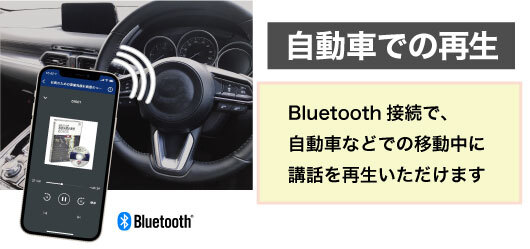 Bluetooth接続をすることで、自動車での移動中にもスムーズに講話音声を再生いただけます。
