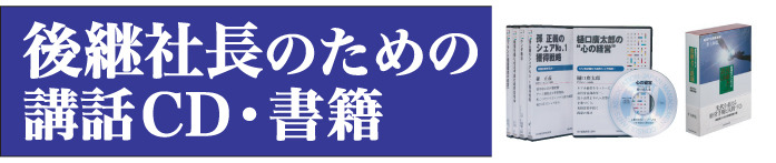 後継社長のための講話CD・書籍のご案内 先代から引き継いだ事業を成功させる後継者は、何を学び、磨いているのか。 経営の原理原則、上に立つ者の魅力、リーダーの姿勢や発想、経営判断の拠り所…。実力専門家、後継社長の生き様から生きた知恵を獲得する講演CD・書籍シリーズ