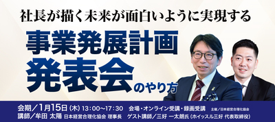 数多くの中小企業の成長の土台を築いてきた「牟田式」事業発展計画発表会のやり方を理事長・牟田太陽が指導します。