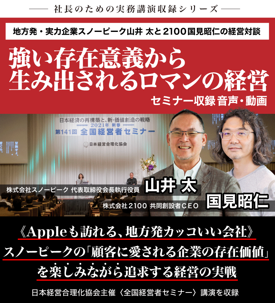 スノーピーク山井太・国見昭仁「強い存在意義から生み出されるロマンの経営」講演音声・動画 お申し込み