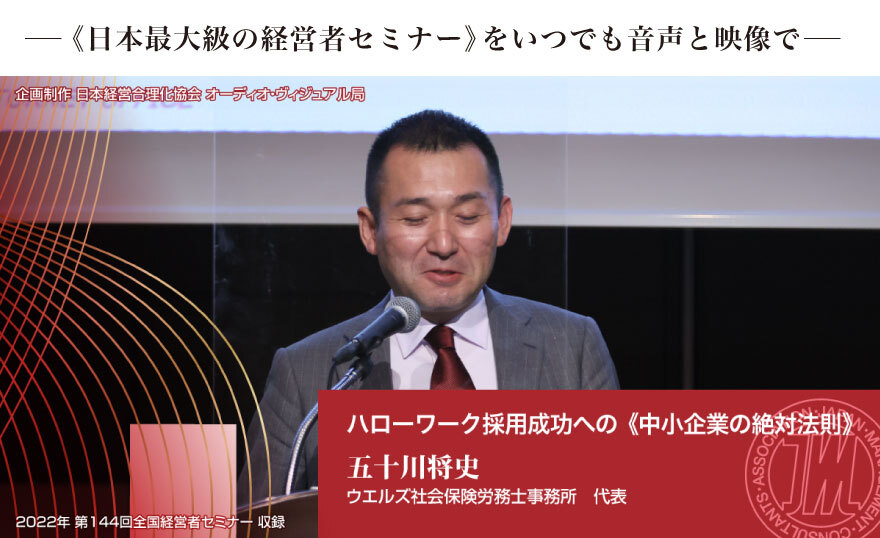 五十川将史「ハローワーク採用成功への《中小企業の絶対法則》」音声版(CD・デジタル版対応)第144回全国経営者セミナー収録 お申し込み