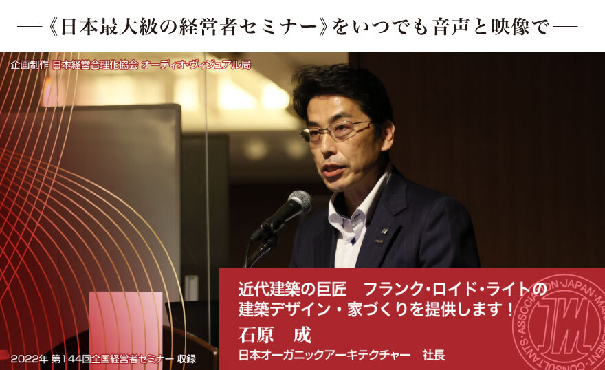 石原 成「フランク・ロイド・ライトの建築デザイン・家づくりを提供します!」音声版(CD・デジタル版対応)第144回全国経営者セミナー収録 お申し込み