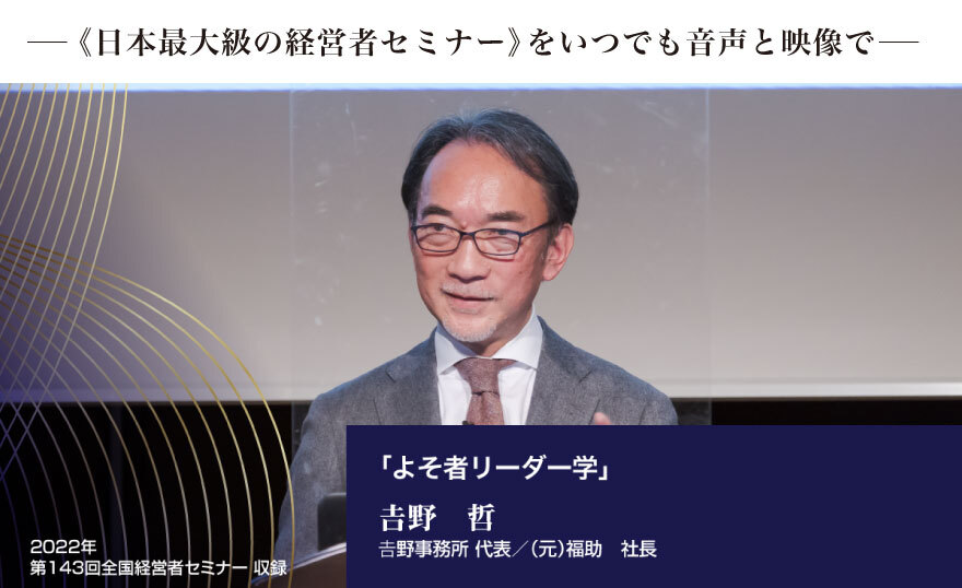 吉野哲「よそ者リーダー学」音声版(CD・デジタル版対応)第143回全国経営者セミナー収録 お申し込み
