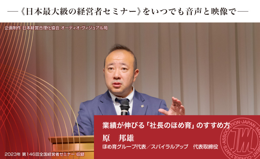 原 邦雄 業績が伸びる「社長のほめ育」のすすめ方 音声版&動画版(CD・DVD・デジタル版対応)第146回全国経営者セミナー収録 お申し込み