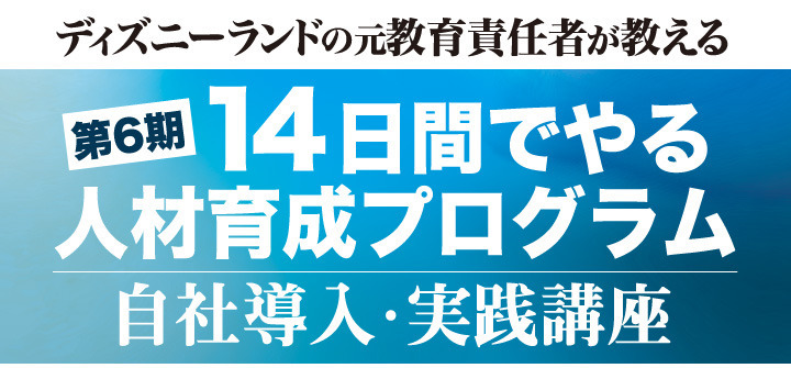 ディズニーランドには、ウォルト・ディズニーの人材への考え方をベースに、長年の経験と実績に裏付けられた「人材教育の仕組み」があります。例えば、「教えてないことは、やらせない、評価もしない」という決まり事。これは、働きやすさにもつながり、短期間で確実に人材を育てるために非常に有効です。本講座では、人材育成の仕組み指導歴30年、斉藤茂一氏の経験を体系化。自社でも活用できる人材育成3つの仕組みを4ヵ月集中で指導します。