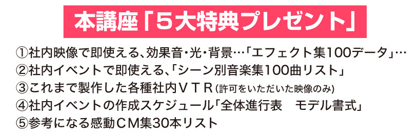 ●プロの技が一瞬で出来る「エフェクト集」贈呈 ●歴史・理念・教育用の編集ひな型