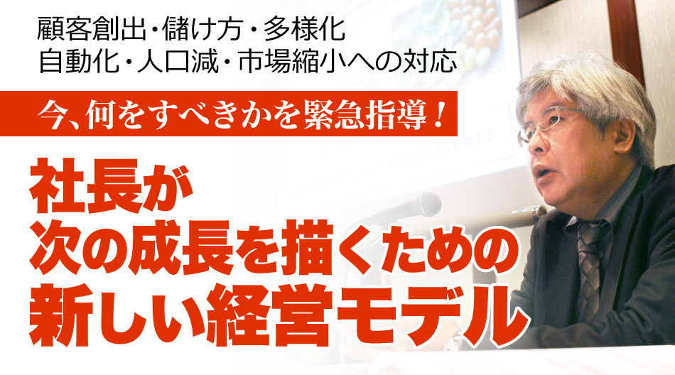本会では、新時代に『社長が次の成長を描くための新経営モデル』と『現状を打破して躍進するための具体的な打ち手』を緊急に指導する。