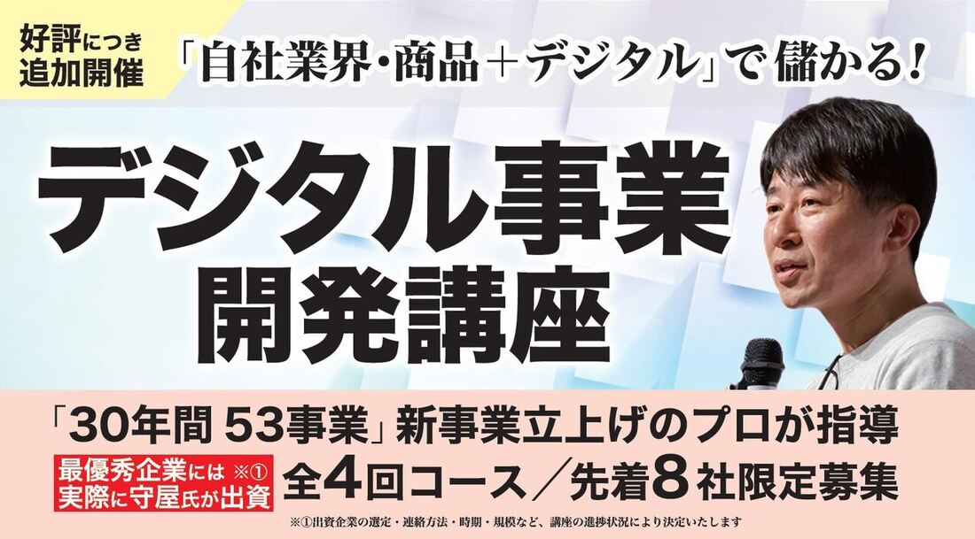 講師には、ラクスルに代表される、デジタル技術を取り入れた新事業開発の専門家・守屋実氏を招聘。