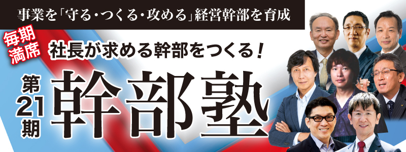 本塾では、社長の想いを事業発展計画としてデザインし、計画書として形にするノウハウを徹底指導する。濃密な指導のため少人数を絶対とし、一期15名限りで募集。