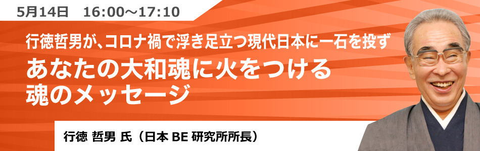 日本BE研究所所長 行徳哲男 (ぎょうとくてつお) 1933年福岡県生まれ。 労働運動の激しき時代に衝撃的な労使紛争を体験し、「人間とは何か」の求道に開眼。 69年渡米、米国流の行動科学・感受性訓練と、日本の禅や哲学を融合させ「BE訓練(Basic Encounter Training)」を開発。 人間開発・感性のダイナミズムを取り戻す4泊5日間の山中訓練を完成させ、99年終了まで政財界、スポーツ界、芸能界など各界リーダー及びその子弟18000名が参加。 影響力は日本のみならず、韓国、中国、アジアの政財界リーダーに及ぶ。