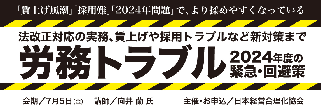 労務問題専門・弁護士 向井蘭 (むかいらん) 弁護士3万人のうちわずか100人しかいない「経営者側」に立つ労働法務専門の弁護士。父が中小企業の経営者という環境で育った背景から、労務問題から会社を救うことを志す。 解雇、雇止め、未払い残業代、団体交渉、労災など、使用者側の労働事件を数多く取り扱う。争いを未然に防ぐ万全な書類整備、労働組合、モンスター社員、ぶら下がり社員との巧みなやりとりにも定評がある。 著書『書式と就業規則はこう使え!』『社長は労働法をこう使え!』『会社は合同労組・ユニオンとこう闘え』『人事・労務担当者のための労働法のしくみと仕事がわかる本』他