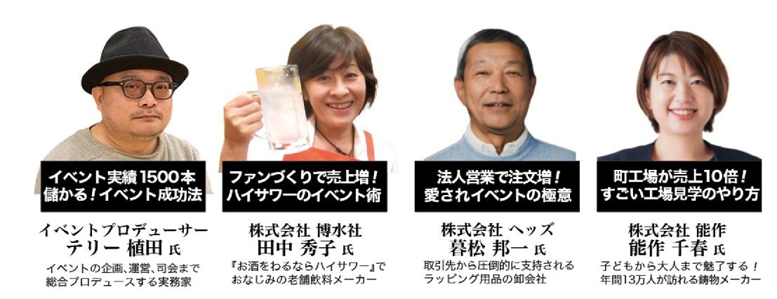本会では、日本へ世界へお客様を増やし、愛される方法を知る実務家をお招きし、試行錯誤でつくり上げた儲かるイベントの成功実務をご指導します。