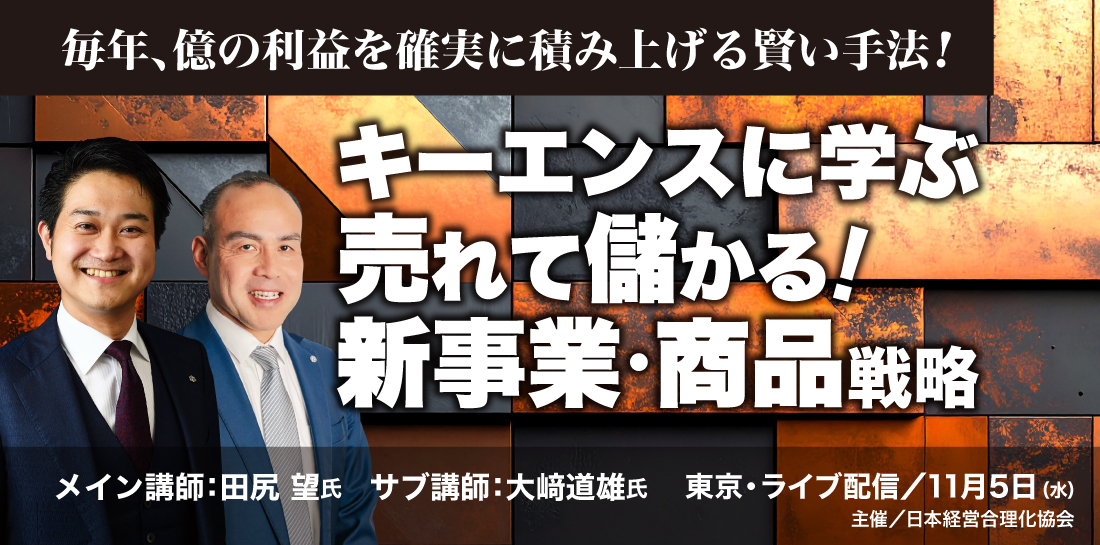 講師には、キーエンス出身の実力コンサルタント2氏が、成功確度の高い新商品づくりや新事業の開発法を惜しみなく指導いたします。