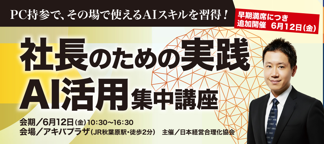【追加開催・6月】社長のための「実践AI活用・集中講座」