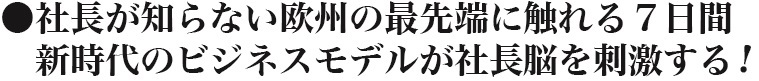 …などである。刺激的な視察先企業と、次々と新事業を展開する経営者と行く海外視察は、あなたに、多くのインスピレーションと事業意欲に火をつけるだろう。