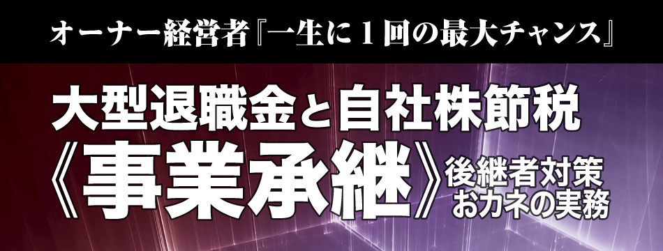 「大型退職金と自社株節税 《事業承継》後継者対策 おカネの実務」セミナーへのお申し込み