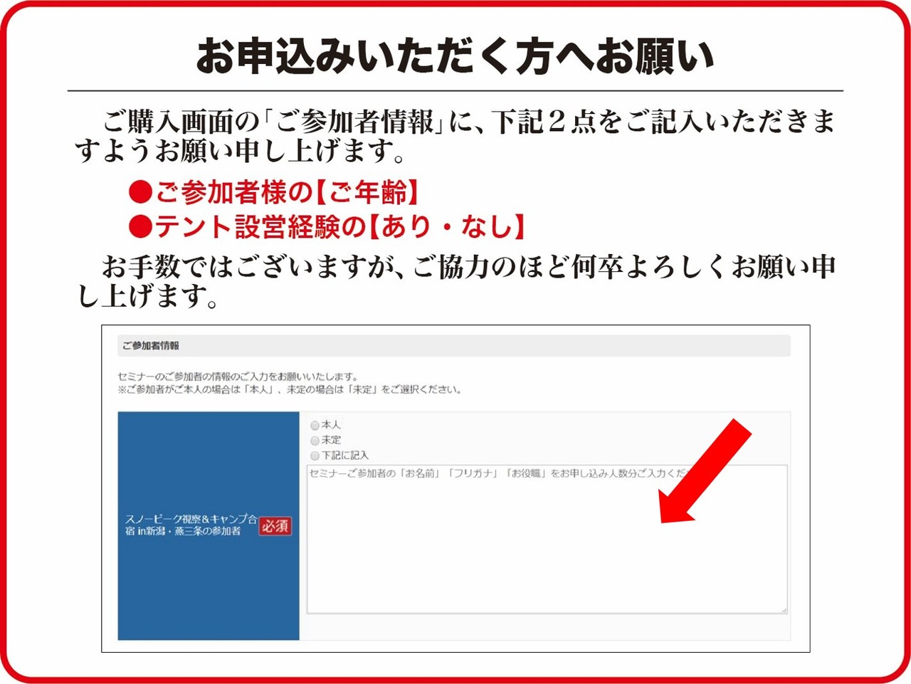 | ※ | 必要なキャンプ用品はすべてご用意。未経験者も楽しく手ぶらで参加いただけます。 |